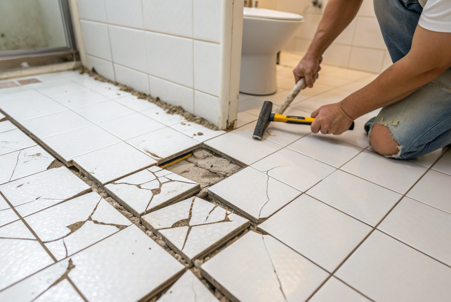 Some of the most common calls we get are for tile damage that happened during or after fixture work — a toilet removal that cracked the surrounding floor, a vanity replacement that left broken tiles behind, or a shower base removal that exposed damaged sections underneath. Fixtures and fittings put concentrated stress on the tiles directly around them, and when they’re removed or replaced, that stress often shows up as cracked or broken floor tiles.