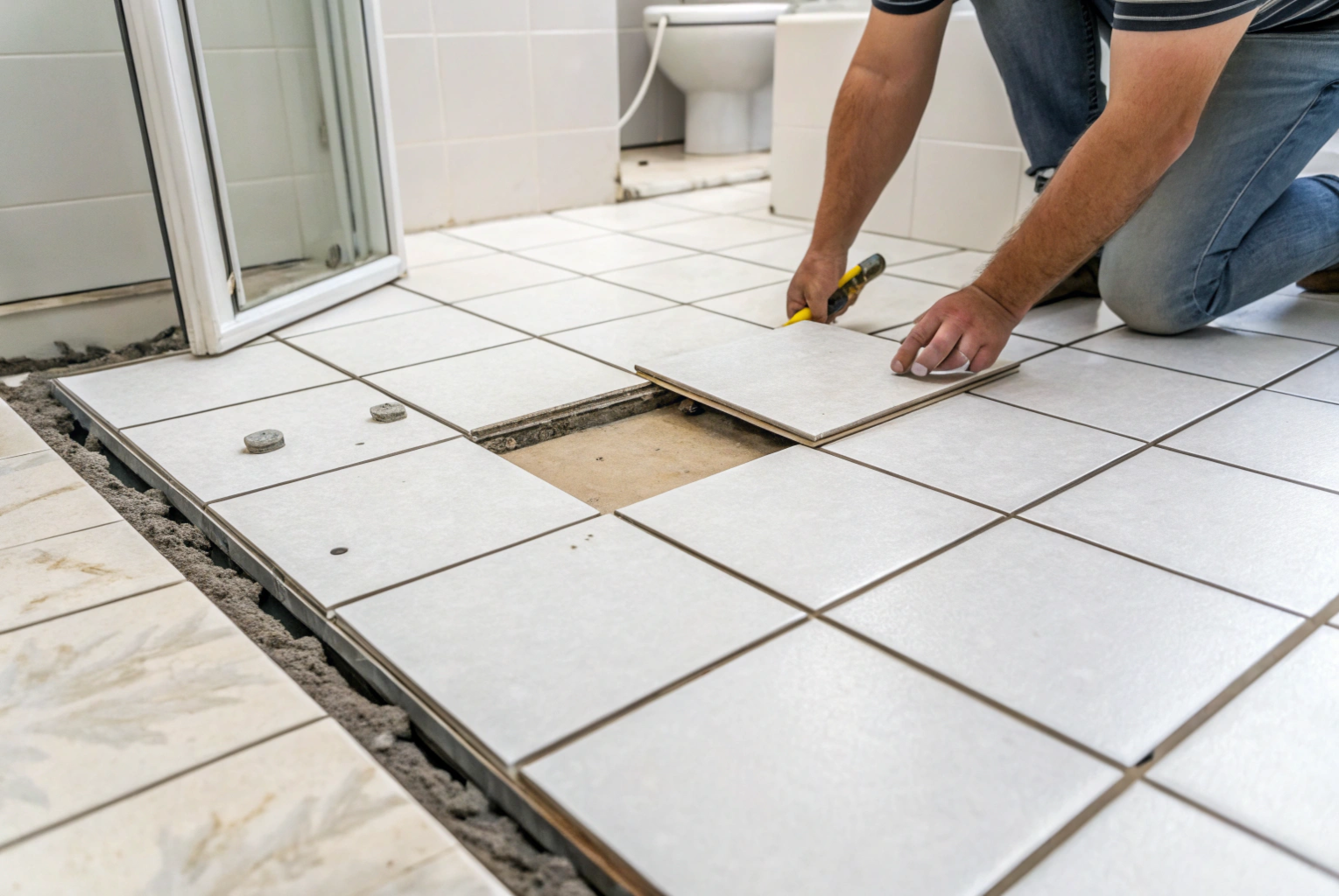 Bathroom floor tile replacement isn’t just about finding a tile that looks right — it has to sit at the same height as the tiles around it. A replacement tile that’s even a few millimetres too high becomes a trip hazard. One that sits too low creates a dip that collects water, dirt, and eventually cracks the grout at the edges. Getting the level right is what separates a proper replacement from a patch job.